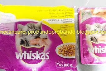 Como ya comenté en otras opiniones, tengo un gatito que ahora está a punto de cumplir tres meses, que demanda cada vez más comida. Una vez terminado el destete, le estoy alimentando con pienso, pero de vez en cuando le doy comida húmeda adaptada a su edad por varias razones. La primera es porque un gato tan pequeño necesita un aporte calórico bastante alto (aún así me ciño a las recomendaciones alimenticias), y la segunda es porque, evidentemente, este tipo de comida le encanta, se vuelve loco con ella.La marca Whiskas no es la que más me gusta; no diré que sea mala, simplemente que hay otras mucho mejores. Es por eso que no la suelo usar para basar su alimentación, uso otra que me inspira mucha más confianza. Pero como quiero acostumbrar a mi gato a probar de todo (ya tuve un gato que se acostumbró a una comida en particular y no quiero que vuelva a suceder), le compro diferentes marcas y sabores. Así que considero que esta marca está bien para dársela de vez en cuando, pero no basaría su alimentación en ella (manías...).