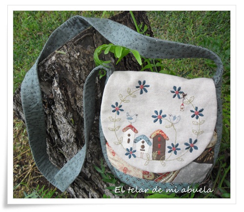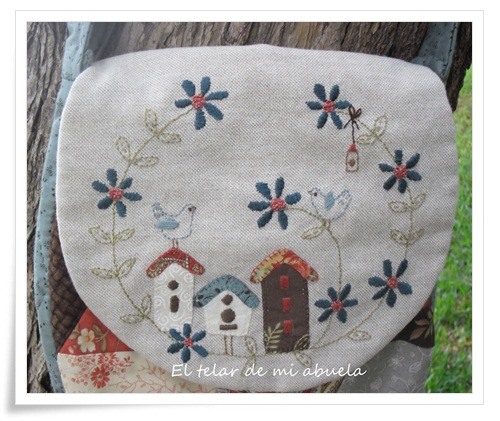 Ha sido una delicia bordar el motivo en el lino y elegir las telas a lo loco con restos de otras labores.