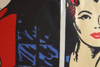 Está realizado con boquilla de bronce, cadenas y tela de cómic.