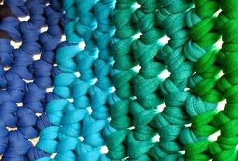 El que hoy os muestro está tejido en trapillo de colores con ganchillo número 14 y es de tamaño XXL.