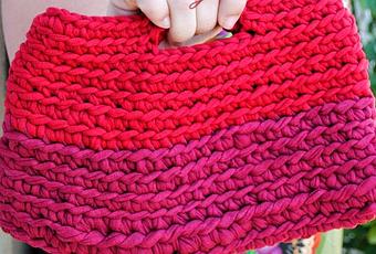 Para el cumpleaños de mi cuñada Yone le hice un bolsito a trapillo bicolor, quedó pequeñito, pero muy coqueto, casi no se lo doy y me lo quedo yo, pero se lo hice para ella con todo cariño y se lo di.