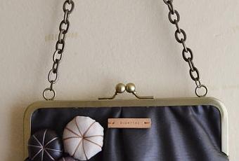 Bonito bolso de boquilla realizado en piel ecológica y flores japonesas en tonos marrones.