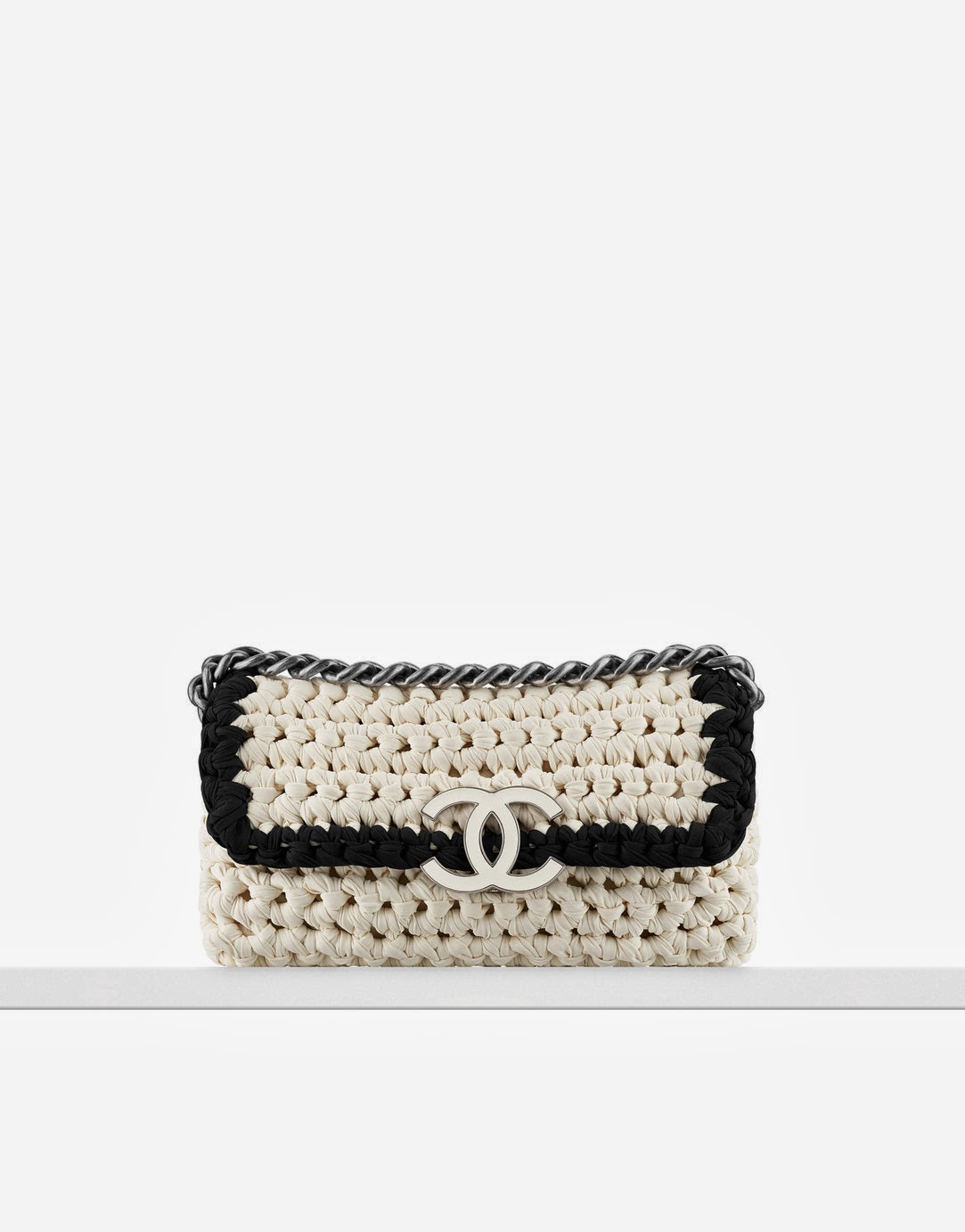 Estos pequeños bolsos de croché son bastante especiales, no por la dificultad que pueda entrañar su elaboración, que no creo que la tenga, pero sí por la firma; ambos son dos modelos de Chanel.