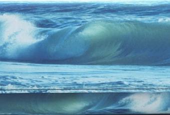 Entre los modelos que encontramos tenemos este clutch donde el azul del mar es la estrella del bolso. Con el juego de diferentes tonos de este azul recrea una fantástica ola que sería el sueño de cualquier surfista.