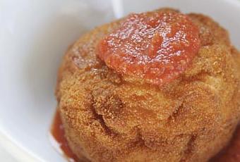Esta es mi segunda aportación al concurso que presenta Paco con motivo de su aniversario.En este ocasión he querido reinventar la moussaka, utilizando los ingredientes tradicionales pero dándole otra forma y sabor.En Barcelona es muy conocida la tapa de Bombas, se trata de unas bolas de patata rellenas de carne picada que normalmente llevan encima allioli y salsa de tomate picante. Pues yo he hecho unas bombas pero las he rellenado de carne de cordero picada y de berenjena.
