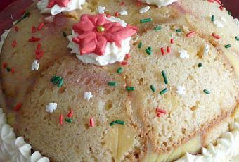 Como es mucho mejor una imagen que mil palabras.....Abrimos el bizcocho y lo cortamos en rebanadas, cubrimos una ensaladera con papel film para así poder desmoldar mucho mejor la bomba.Vamos colocando las rebanadas de bizcocho como veis en la foto. Ahora hacemos el flan como indica en el sobre: ponemos al fuego una cazuela con la leche menos un vaso grande en donde disolveremos los sobre de flanin. Añadimos el azúcar a la leche y cuando comience a hervir añadimos la mezcla que teníamos reservada en el vaso. Removemos hasta que vuelva a hervir. Dejamos templar y vertemos en la ensaladera. Dejamos templar un poco y cubrimos con bizcocho, tapamos con el papel film y metemos en el frigo.Yo lo hice con 24h de antelación.Sacar y desmoldar en un plato bonito, decorar al gusto, yo monté un brick de nata para adornar un poco, también hice unas flores con fondant y unos fideos de colores navideños.