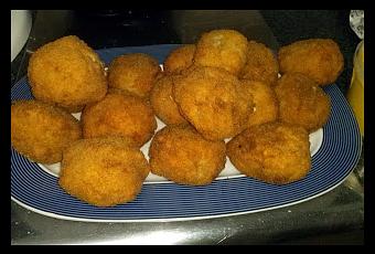 Batimos los huevos, en otro plato ponemos pan rallado, pasamos la bomba primero por huevo y después por pan rallado, así dos veces, es decir, otra vez por el huevo y por el pan rallado y ya tenemos las bombas listas para freír en abundante aceite bien caliente. Se puede acompañar de mayonesa o de esta salsa que a continuación os dejo.