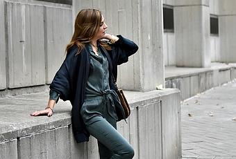Camisa y pantalones: SAKARA SHOP C/ Fernández de la Hoz 39, Madrid aqui Pendientes: Omitouch, Bomber: H&M temporada pasada, Bailarinas Kitthen heels: PRADA, Bolso: GUCCI vintageBuenas tardes! Hoy combino una bomber extra over size con un dos piezas que hacen el efecto de un jumpsuit (o mono de toda la vida), la blusa tiene lazada a la altura de la cintura. Me chifla el color y la textura, una gozada. Hago mix con el azul de la bomber, que ya sabéis que el azul y el verde me vuelve loca, igual que el azul y el negro. Unos kitten heel en ante de Prada y un bolso bandolera vintage de Gucci y a la calle. Me encantan estas dos piezas de Sakara, muy muy chics!