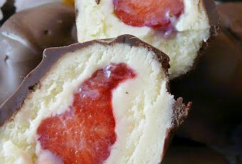 Por fuera parecen unos bombones de chocolate normales pero cuando los muerdes.... menuda sorpresa. Receta de la revista Thermomix.