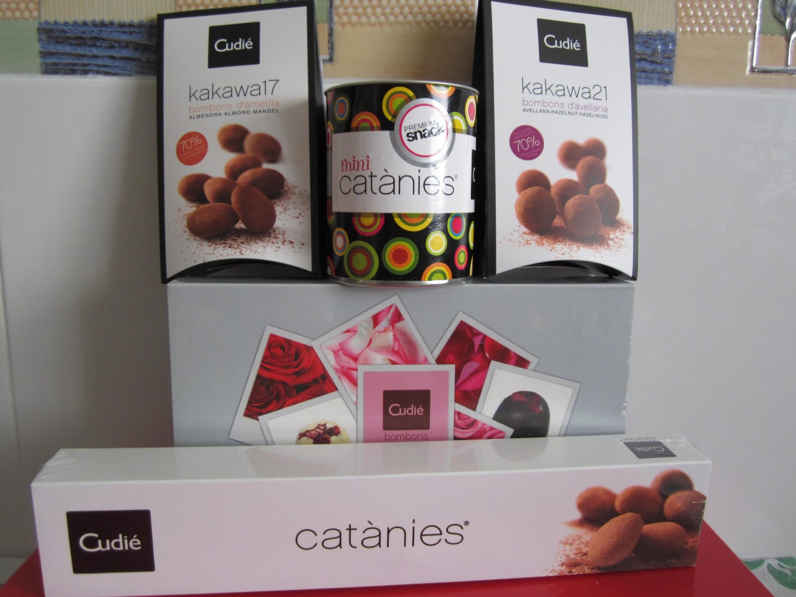 BOMBONES CATÀNIES:Una combinación perfecta de chocolate y Mediterráneo. Elaboradas artesanalmente con una almendra marcona caramelizada, recubierta con su praliné secreto de frutos secos y decorada con original cacao en polvo. Sin duda son la creación más representativa del espíritu Cudié