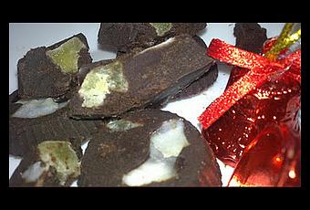 Bombones de chocolate y fruta confitada (para 9 bombones)100 gr. de chocolate para fundir30 gr. de leche