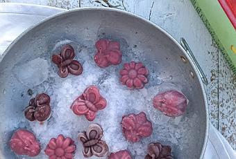 - Pasado el tiempo, sacar el molde y verter el smoothie en los huecos sin llegar al borde.