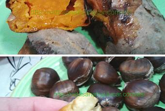 1º Poner papel de hornera en la cubeta de la GM E ó GMD (para proteger la cubeta) añadir las castañas (hacer un corte por en medio sin llegar a partirlas,, poner la tapa doradora, programar olla menú horno 15 minutos la tapa doradora mismo tiempo a 250º, sacar y listos para comer, están deliciosas