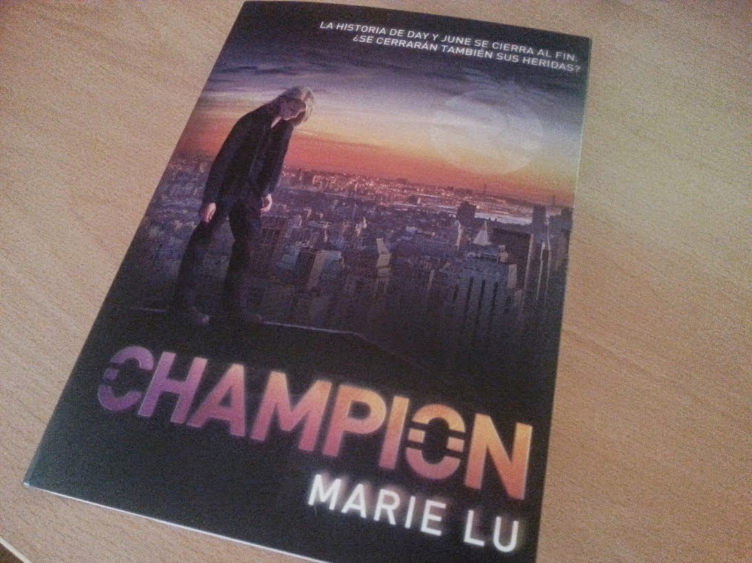 Título: Champion #3Autora: Marie LuNº de páginas: 393.Editorial: SMLengua: CASTELLANOSINOPSIS: La apasionante conclusión de la trilogía"Legend".June y Day han tenido que renunciar a muchas cosas para facilitar la paz en la República: entre ellas, a un futuro juntos. Pero ahora, gracias en gran medida a su papel, el país parece avanzar hacia un futuro mejor.Nadie podía haber previsto el recrudecimiento de la guerra: e n plenas negociaciones de paz, el estallido de una epidemia virulenta en el país vecino lleva a las autoridades de las Colonias a culpar a la República y romper el armisticio. June y Day se encuentran de nuevo. ¿Serán capaces de salvar al país una vez más? ¿Y serán capaces de salvar lo que hay entre ellos?