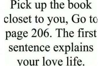 Toma el libro más cercano a ti, ve a la página 206. La primera oración explica tu vida amorosa.