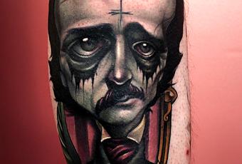 Hoy en homenaje a la nueva imagen de mi blog, conseguida gracias a la maestría de Marta Lobo, me voy a dar el lujo de hacer una entrada qe reuna dos de mis grandes aficiones, los tatuajes y los libros, en concreto los mejores tatuajes que he encontrado de un genio de la literatura... el maestro Edgar Allan Poe.Muchos conoceréis su retrato e incluso alguno haya leído alguno de sus relatos... no todos serán tan freaks como yo, que los he leído todos hasta el punto de casi memorizarlos, pero seguramente habrá algún despistado que sepa poco sobre la vida y la obra de este maestro de la palabra escrita, así que iré intercalando imágenes con pinceladas sobre su vida y obra.