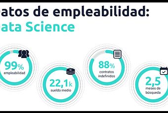 Por otro lado, aquellos que se decantaron por Data Science, tardaron de media 2,5 meses en encontrar empleo, pero su sueldo medio sube ligeramente alcanzando los 22.100€ al año en su primer contrato profesional como juniors.