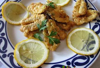 - Boquerones de mediano tamaño limpios de vísceras y raspas 300 g.- Zumo de ½ limón.- Ajos 1 diente.- Perejil fresco.- Sal.- Harina de freír "Las Panaeras sevillanas" o cualquier otra de similares características.- Huevo batido.- Aceite de oliva.