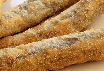 Me gustan muchísimo aunque a veces tenga que afinar para encontrar el punto justo del adobo, más por el tiempo de reposo que por la cantidad de especias o de vinagre. No los dejé demasiado tiempo, sólo 3 horas, pero estaban riquisimos. Es primordial la harina (en Sevilla le llamamos "de pescado"). No suelo hacerlo, pero os recomendaría una que no está nada mal y creo que la marca la conoceis casi todos porque la he visto en muchísimos blogs. El aceite, de oliva, en su temperatura justa y poco más.