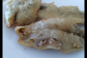 Ingredientes: 1 kilo de boquerones 250 gr de harina de garbanzo 1 diente de ajo picado 1/4 de cebolla picada mejorana picada aceite sal pimienta agua