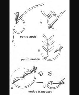 Esquema del Punto Atrás( ...o pespunte, como le digo yo)Y del Nudo Francés...también hay otro punto, pero en este caso no lo utilicé