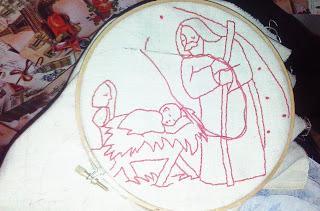 Hola, chicas!Así estoy, ya por el segundo bordado Redwork para esta Etapa 2...Quise también, aclarar que ademas de usar hilo rojo o bordó, queda muy bien bordar todo en punto pespunte! (otros le dicen punto atrás)