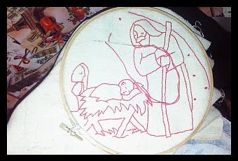 Y así, puntada tras puntada vamos completandoel bordado del Nacimiento de nuestro Salvador!Para las pequeñas estrellas, uttilicé el punto nudo francés...Y, como me parece que se les haría mas fácil entender con las ilustraciones......en la web encontré estas explicaciones que les van a facilitar las cosas, seguramente!