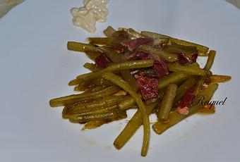 Unas manojo de borrajasUnos tacos de jamónAceite de olivaUn diente de ajoSalPreparación:Es un poco laboriosa su limpieza pero vale la pena el resultado, solo se comen las pencas.Para su preparación cortamos la parte de las hojas y lo tiramos y debemos pelar la penca alrededor para quitarle esos pelillos y partir en dos o tres trozos según lo grande que sean.Ponemos una olla con agua y sal y las cocemos igual que si fuese otra verdura por ejemplo las acelgas cuando estén las pencas tiernas escurrimos y reservamos.Pelamos el ajo y lo hacemos a trozos.Partimos el jamón a tacos y reservamos.Ponemos una sartén con un poco de aceite y freímos los ajos.
