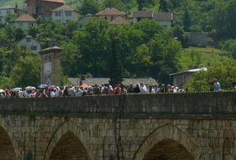Puente de Visegrad sobre el río Drina desde el que los familiares de las víctimas lanzan 3000 rosas rojas en conmemoración a los asesinatos.