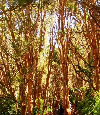Los arrayanes o Luma apiculata, son siempre verdes, en Argentina toman forma arbórea alcanzando los 18 metros con unos 300 años de edad, es aquí solamente que encontramos unas 20 hectáreas formando un bosque, los podemos encontrar en Chile, en menos cantidad y en otros lados que crecen no llegan a 5 metros….