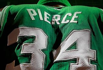 La ceremonia de retiro de la camiseta de Pierce se retiró el 11 de febrero de 2018, una década después de que el jugador levantara la pancarta del título de Boston en el 2008, en esta ceremonia Pierce estuvo acompañado por su madre, su esposa y sus tres hijos, de quienes dijo que siempre habían sido su gran apoyo como profesional.