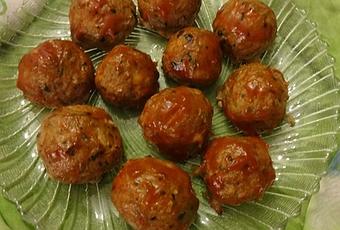 4. Colocar las albóndigas en una bandeja para hornear forrada con papel pergamino y hornearlas a 180°C (350°F) durante 20 minutos. Sacar la bandeja del horno, cepillar las albóndigas de Kétchup y cocinarlas otra vez durante 5 minutos a la misma temperatura. .