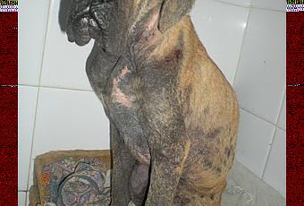 Quique es un bóxer de cinco meses, completamente desfigurado y en un estado terrible. Quique tiene una infección en la piel muy grave, acentuada aún mas por el abandono y la desnutrición que ha sufrido.Con solo cinco meses Quique no es mas que un fantasma de lo que debía ser... un precioso bóxer aún cachorro.Todo el cuerpo de Quique está cubierto de una costra y heridas. Ha llegado con problemas digestivos y cualquier pequeña infección hace que su estado peligre porque apenas tiene defensas.Necesitamos ayuda para Quique, necesita atención veterinaria constante dado su grado de desnutrición, alimentación especial y cuidados varios, además de un tratamiento para su problema de piel.Banco Santander. Concepto Quique:CCC 0049-1861-11-2210235578IBAN ES23 0049 1861 1122 1023 5578Contacto: