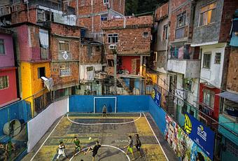 Jóvenes brasileños jugando al fútbol en una favela /Noticiero Deportivo.