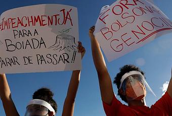 Inmensas pancartas con las frases «¡Fuera Bolsonaro!», «¡Vacuna para todos ya! «Bolsonaro genocida» fueron el común denominador en las marchas de todas las ciudades, así como carteles recordando los 460.000 muertos y más de 16,3 millones de contagios que han convertido a Brasil en uno de los países más afectados por la pandemia.