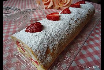 Receta de brazo de gitano de nata y fresas Es época de fresas y el año pasado hice una entrada de recetas con fresas; la de postres fáciles y originales con fresas, pincha aquí si quieres verlo. Pero hoy he querido compartir esta entrada de brazo gitano, del blog de "el hada cocinera", porque me ha encantado. ¡Que lo disfrutéis mucho!