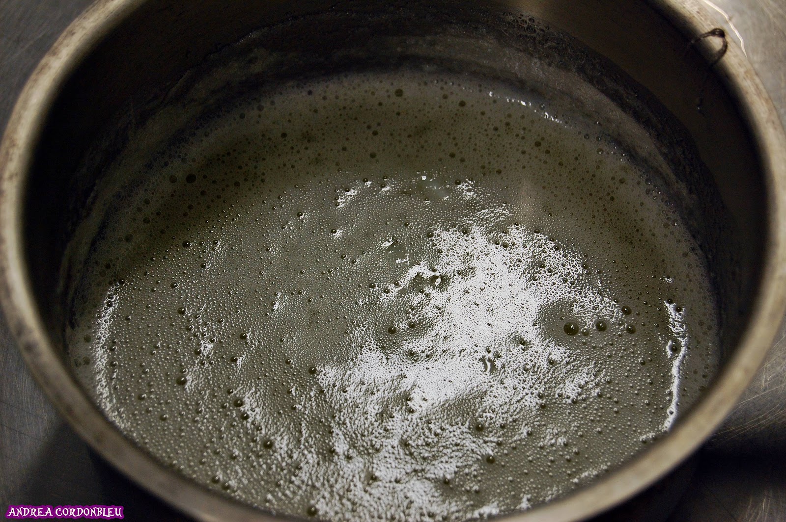 Para hacer el jarabe se calienta el agua y se le incorporan los aromáticos (canela en rama y piel de limón). Se añade el azúcar y se deja hervir a fuego lento.Se cala la plancha de bizcocho con el jarabe frío y se cubre con la crema pastelera.Se enrolla y se deja reposar en el frío unas horas.