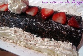 - Mezclar el chocolate con 2 cuch. de leche, y añadir a la mezcla de huevos. Añadir 3 cuch. de harina y 1 cuch. de cacao en polvo, todo tamizado. Mezclar bien y verter sobre la fuente del horno cubierto con papel vegetal, bien extendido. Hornear a 200º durante 12´. Sacar, volcar sobre un paño húmedo y enrollar junto con el paño.