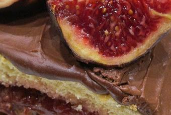 Una vez frío, retiramos los bordes para que quede más presentable y decoramos. Untamos el resto de la ganache de chocolate por el exterior del rollo y colocamos los higos que habíamos reservado de forma curiosa sobre el chocolate. Es mejor conservarlo en un recipiente hermético para que no se reseque. Cuando vayamos a consumirlo, conviene sacarlo media horilla antes para que se atempere y se aprecien mejor todos los aromas y sabores.