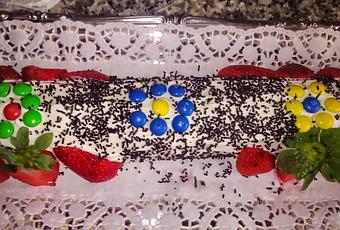 se vuelve a enrollar, lo colocamos sobre la bandeja que lo tengamos que servir (para que no se os ensucie demasiado la blonda os recomiendo poner sobre ella una servilleta por ambos lados hasta que terminemos la decoración.