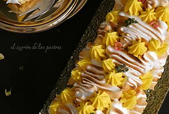 Decoramos poniendo merengue por encima del brazo de gitano y la crema de linón.