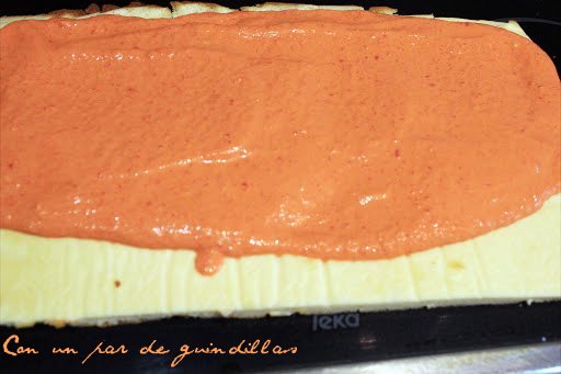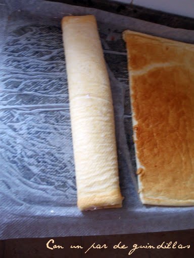 7.- Rellenamos la masa con la mezcla elegida, la enrollamos y la dejamos enfriar en el frigorífico.