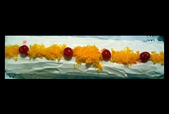 Hay que taparla bien con esta mezcla y que no se vea la base. A mí me gusta que quede bien cargadito y este año me quedé un poco corta para mi gusto. A la hora de enrollar, ir con cuidado porque se puede partir, poco a poco lo iremos haciendo. Ahora toca preparar una mahonesa con un diente de ajo bien pequeño (que se puede no poner), un poco de sal, leche sin lactosa (yo empleé en esta ocasión kaiku) o de soja (si es de soja, añadir un poco de azúcar también) y aceite (a mí me gusta mezcla de oliva con girasol). Cubrimos bien con la mahonesa, tanto por arriba como por abajo y decorar al gusto. En esta ocasión lleva guindas rojas y huevo hilado. El sabor es muy rico, mezcla de dulce con salado y ese pequeñísimo toque del ajo en la salsa. ¡Espero que les guste! Esto es lo único que sobró. Que nos comimos al día siguiente.