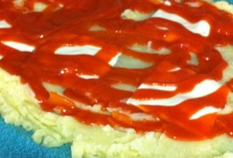 A continuación ponemos sobre las patatas 4-5 tranchetes y lo cubrimos con tomate frito.