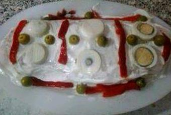 Una vez que hayamos terminado con el relleno procedemos a enrollar iremos enrollando ayudándonos con el papel de horno, cerramos las puntas y colocamos en una fuente. Seguidamente cubrimos de mayonesay a continuación adornamos con las aceitunas, las tiras de pimiento morrones, el huevo duro cortado a rodajas.