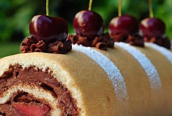 Mezclamos el resto de la trufa con las cerezas picadas, este será el relleno del brazo.