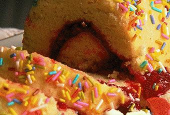 Desenrollamos el bizcocho y si queremos lo podemos enborracha con una almibar, echamos la mezcla, volvemos a enrollar con cuidado, y cubrimos con una capa muy fina de la nata , decoramos con los fideos de colorines y las cerezas. Y listo a comer que vuela