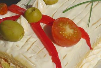 2- Extender el relleno sobre el bizcocho frío, enrollar ayudándonos del papel de hornear, apretando un poco para que quede compacto, cubrir con una fina capa de mahonesa, adornar y llevar a la nevera.