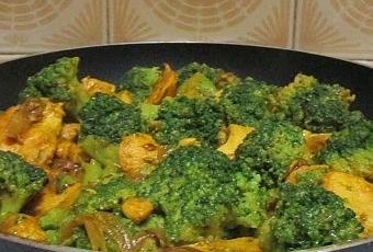 Brécol con pollo al curry
