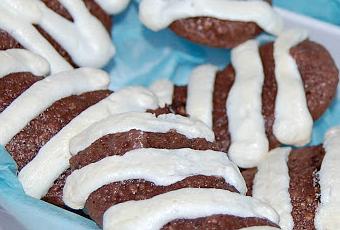 Ponemos el merengue que teníamos reservado en otra manga pastelera y vamos formando hilos en las galletas.